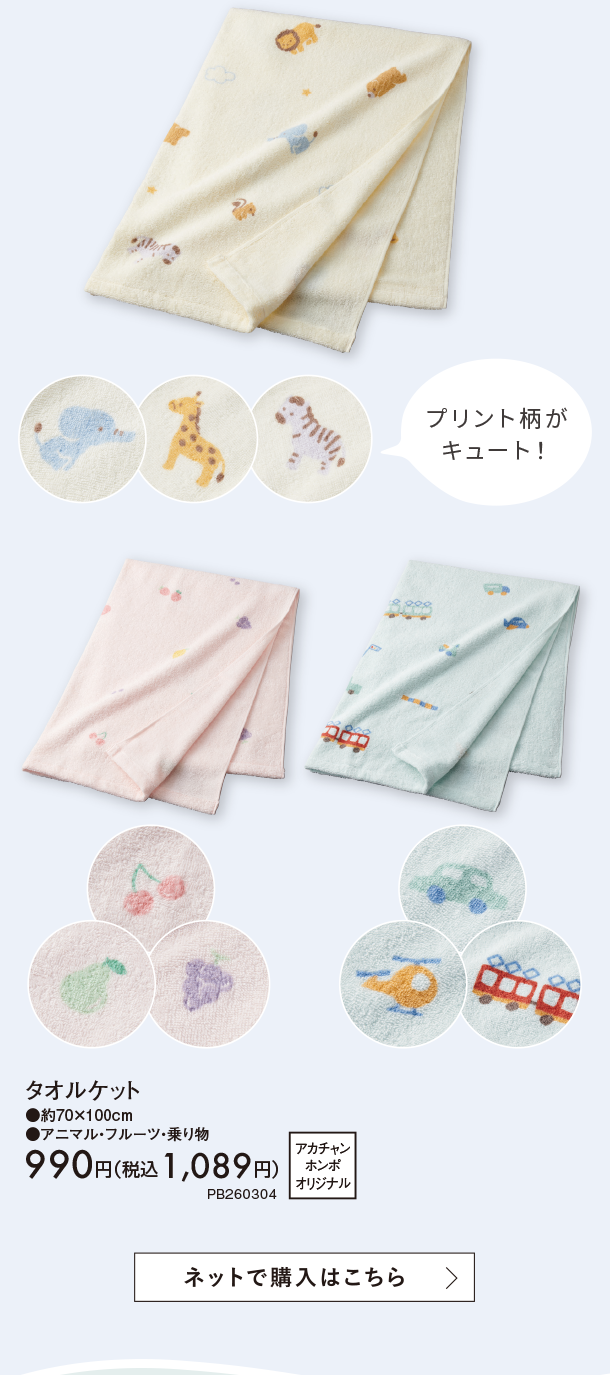 オリジナルアイテム|タオル・ガーゼケット 各種|アカチャンホンポ