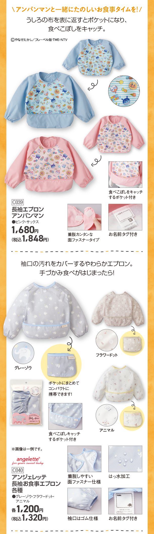 エプロンやボトルマグなど、便利なおしょくじアイテムをチェック!|アカチャンホンポの入園・新学期買い足し&買い忘れフェア おしょくじグッズ