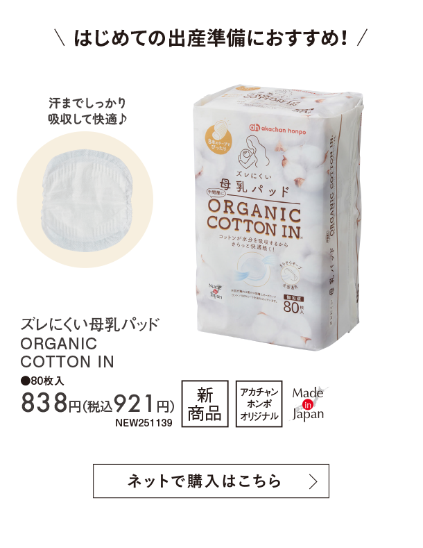 11月新商品情報|ズレにくい母乳パッド ORGANIC COTTON IN|アカチャンホンポ