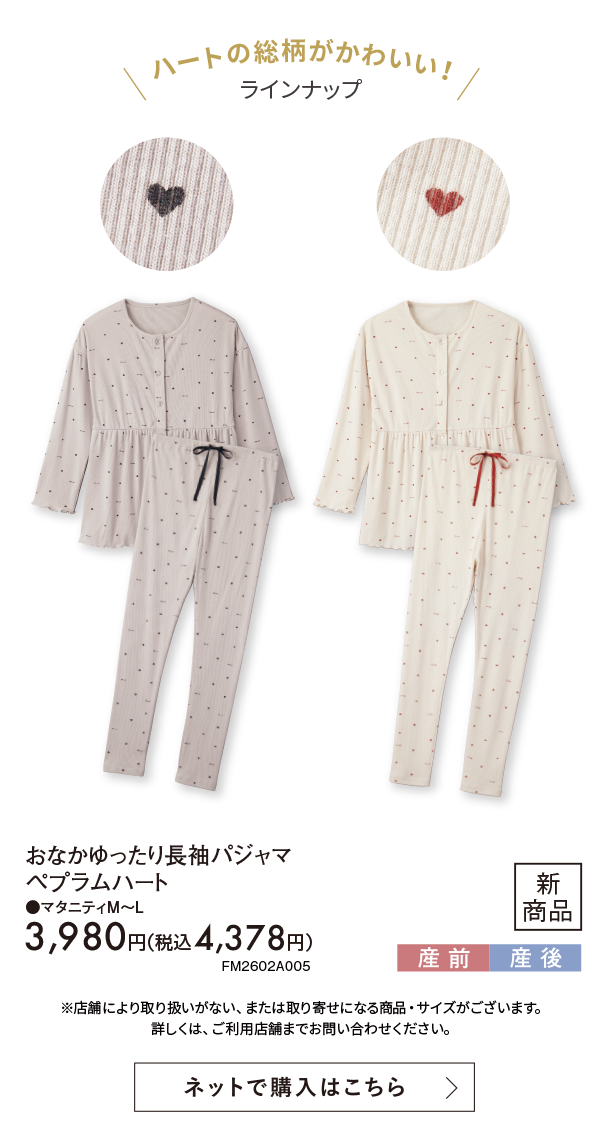2月新商品情報|おなかゆったり長袖パジャマ ペプラムハート|アカチャンホンポ
