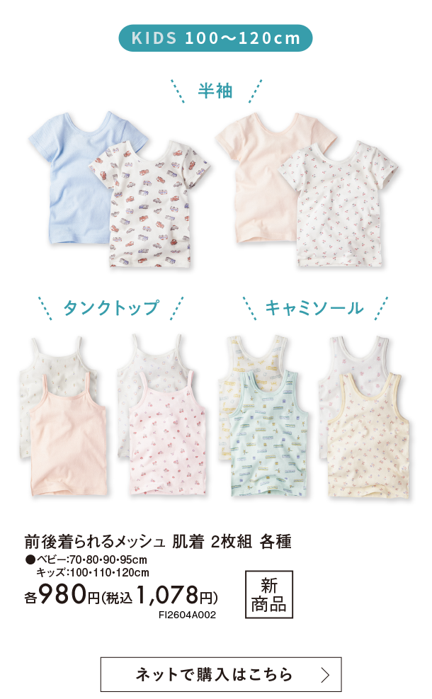 5月新商品情報|前後着られるメッシュ 肌着 2枚組 各種|アカチャンホンポ