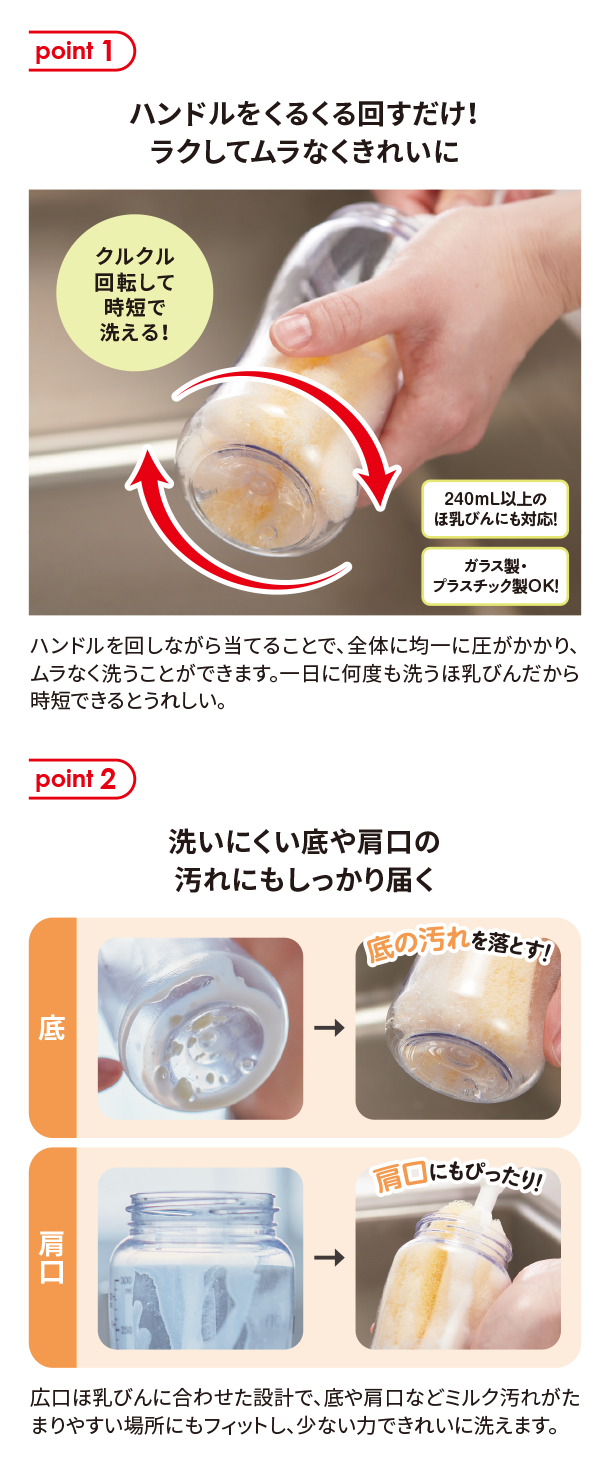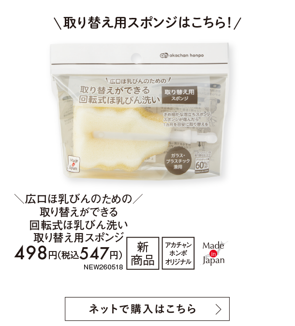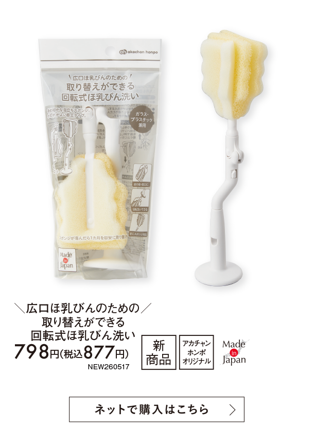 5月新商品情報|\広口ほ乳びんのための/取り替えができる回転式 ほ乳びん洗い|アカチャンホンポ