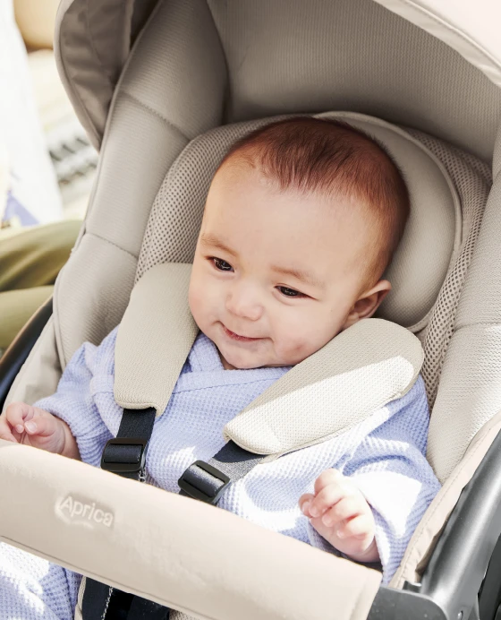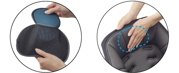 衝撃吸収パッドを、本体シートの裏にあるポケットに入れ替えると、首すわり後もずっと使える。