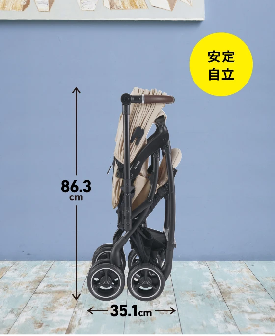 すっぽり覆いしっかりガード。日除けレバーで幌位置をピタッと調節。