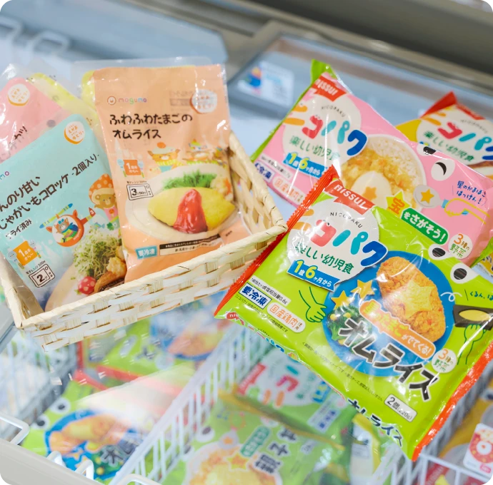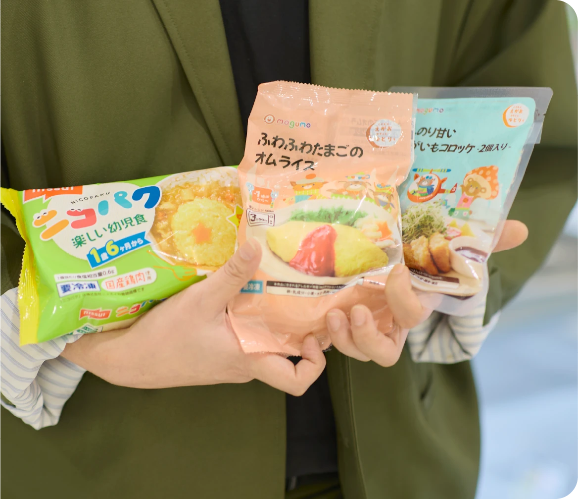 幼児食の取り扱い拡大に取り組んできた山崎さんにとって、幼児向け冷凍食品の導入はずっと実現したい目標だった。 「近年の急激な技術の進化によって、冷凍食品の種類も数も大幅に増えています。特に調理済みの冷凍食品は、温めるだけで食卓に出せてしかもできたてのような美味しさを楽しめます。ここに、今までにない幼児食としての大きな可能性を感じていました」。